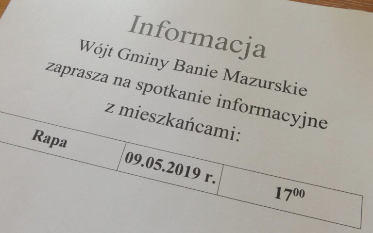Wójt gminy Łukasz Kuliś zaprasza mieszkańców Rapy na spotkanie informacyjne, które odbędzie się dnia 9.05.2019 r.…