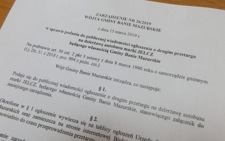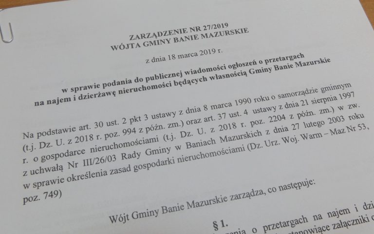Na stronie BIP Gminy Banie Mazurskie opublikowano zarządzenie Nr 26/2019 Wójta Gminy Banie Mazurskie z dnia…