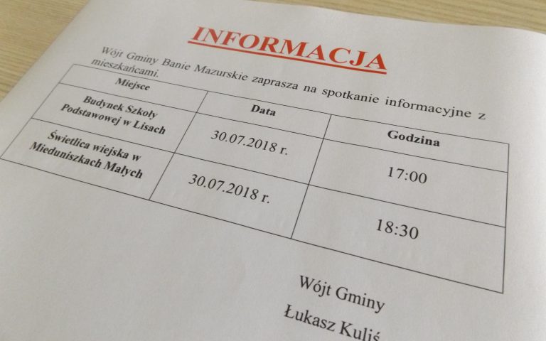 Wczoraj (24.07.2018 r.) w Urzędzie Gminy w Baniach Mazurskich miało miejsce spotkanie, podczas którego omawiano kwestie…