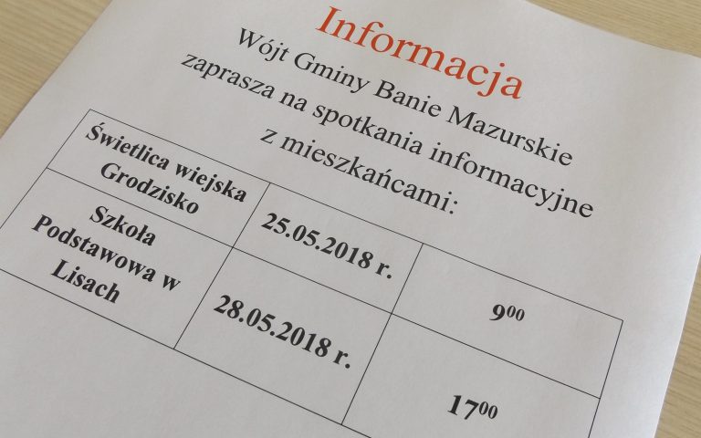 Wójt Łukasz Kuliś zaprasza na spotkania informacyjne z mieszkańcami w następujących miejscowościach: Grodzisko (świetlica wiejska) –…