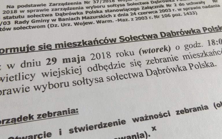 W dniu 29 maja 2018 roku (wtorek) o godz. 18:00 w świetlicy wiejskiej w msc. Dąbrówka…