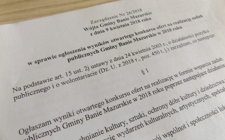 Ogłoszono wyniki otwartego konkursu ofert na realizację w formie zadań publicznych Gminy Banie Mazurskie w 2018…