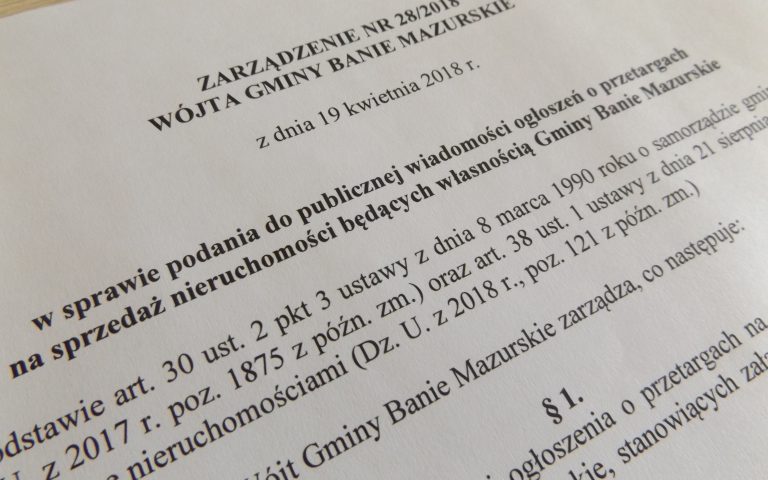 Ogłoszono Zarządzenie Nr 28/2018 Wójta Gminy Banie Mazurskie z dnia 19 kwietnia 2018 roku w sprawie…