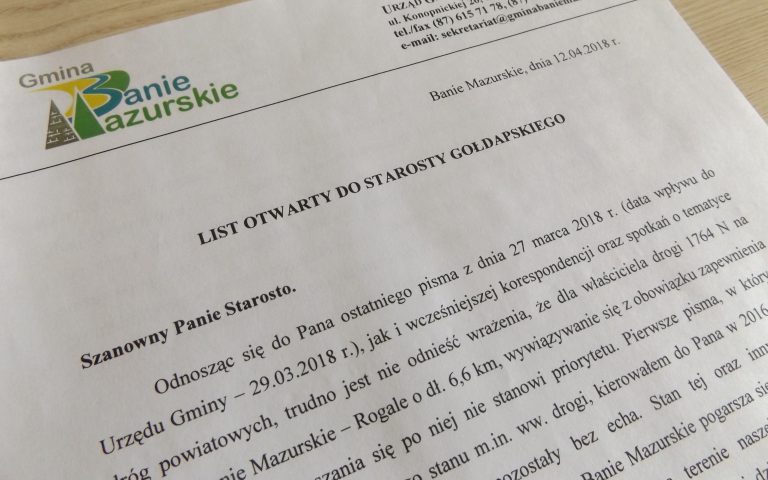 Wójt gminy Łukasz Kuliś, wystosował list otwarty do starosty gołdapskiego – Andrzeja Ciołka, w którym poruszył…