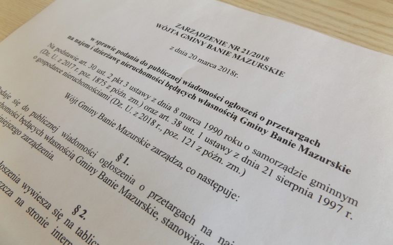 Ogłoszono Zarządzenie Nr 21/2018 Wójta Gminy Banie Mazurskie z dnia 20 marca 2018 roku w sprawie…