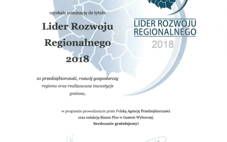 Gmina Banie Mazurskie otrzymała nominację do tytułu „Lider Rozwoju Regionalnego 2018” w programie prowadzonym przez Polską…