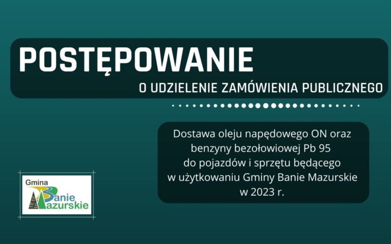 Gmina Banie Mazurskie opublikowała zapytanie ofertowe GKIŚ.ZO.271.1.2023 na „Dostawę oleju napędowego ON oraz benzyny bezołowiowej Pb 95…