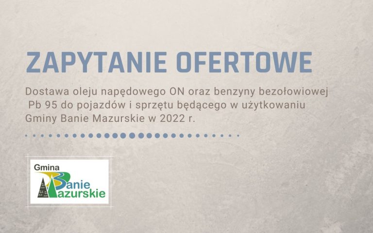 Gmina Banie Mazurskie opublikowała zapytanie ofertowe GKIŚ.ZO.271.1.2022 na „Dostawę oleju napędowego ON oraz benzyny bezołowiowej Pb 95…