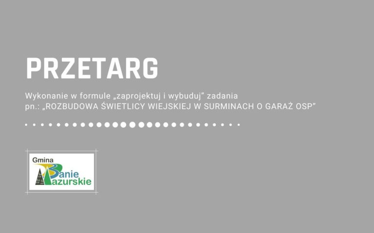 Gmina Banie Mazurskie opublikowała zamówienie publiczne GKIŚ.ZP.271.5.2021 na Wykonanie w formule „zaprojektuj i wybuduj” zadania pn.:…