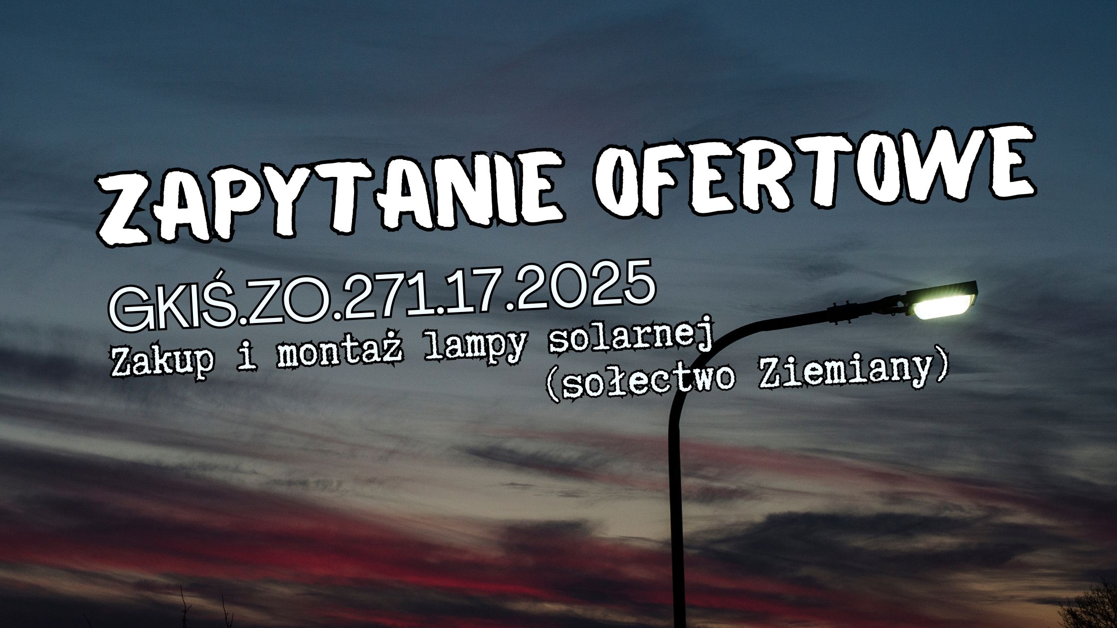 Gmina Banie Mazurskie opublikowała postępowanie o udzielenie zamówienia publicznego GKIŚ.ZO.271.17.2025 na zakup i montaż lampy solarnej (sołectwo Ziemiany).