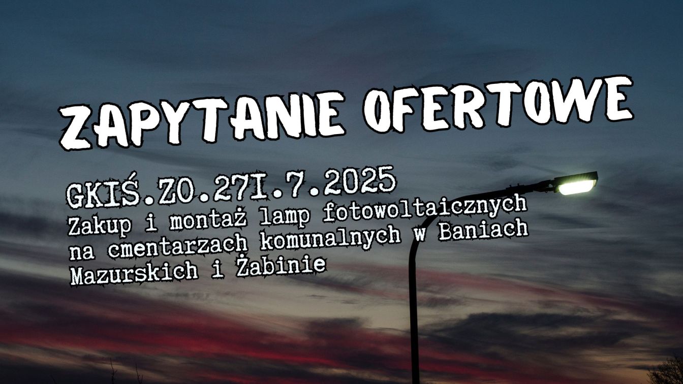 Gmina Banie Mazurskie opublikowała postępowanie o udzielenie zamówienia publicznego GKIŚ.ZO.271.7.2025 na zakup i montaż lamp fotowoltaicznych na cmentarzach komunalnych w Baniach Mazurskich i Żabinie.