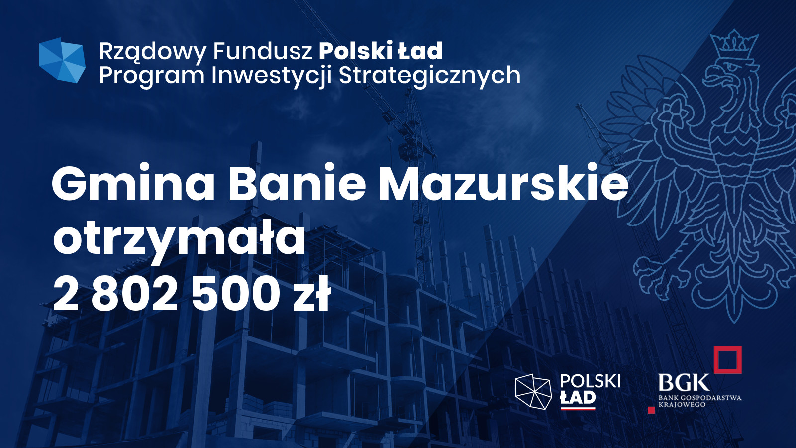 Wczoraj ogłoszone zostały wyniki pierwszej edycji pilotażowego Programu Inwestycji Strategicznych – Rządowy Funduszu Polski Ład. Wśród samorządów z naszego regionu, do których trafią rządowe dofinansowania znalazła się Gmina Banie Mazurskie.