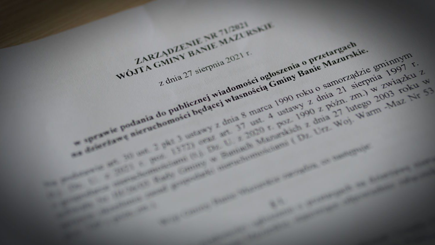 Zarządzeniem Nr 71/2021 Wójta Gminy Banie Mazurskie z dnia 27 sierpnia 2021 roku podano do publicznej wiadomości ogłoszenia o przetargach na dzierżawę nieruchomości będących własnością Gminy Banie Mazurskie.