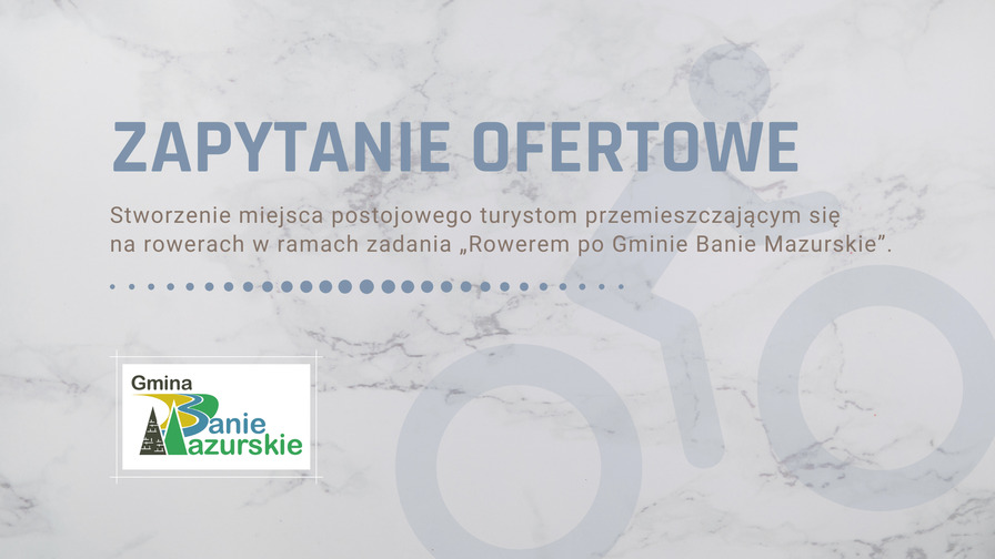 Na stronie internetowej BIP Gminy Banie Mazurskie opublikowano zapytanie ofertowe nr GKIŚ.ZO.271.14.2020 na stworzenie miejsca postojowego turystom przemieszczającym się na rowerach w ramach zadania „Rowerem po Gminie Banie Mazurskie”.