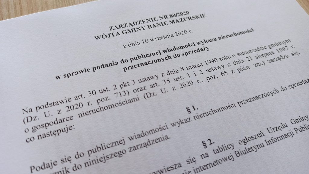 Na stronie internetowej BIP Gminy Banie Mazurskie opublikowano Zarządzenie Nr 80/2020 Wójta Gminy Banie Mazurskie z dnia 10 września 2020 r. w sprawie podania do publicznej wiadomości wykazu nieruchomości przeznaczonych do sprzedaży. Poniżej publikujemy jego załącznik – wykaz: