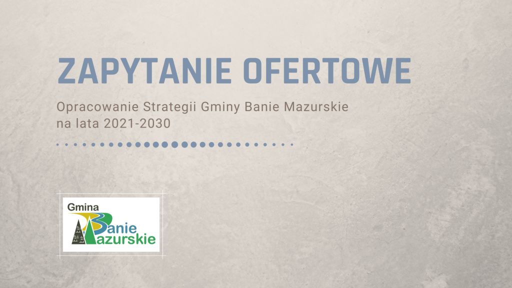 Gmina Banie Mazurskie opublikowała zapytanie ofertowe GKIŚ.ZO.271.07.2021 na „Opracowanie Strategii Gminy Banie Mazurskie na lata 2021-2030”.