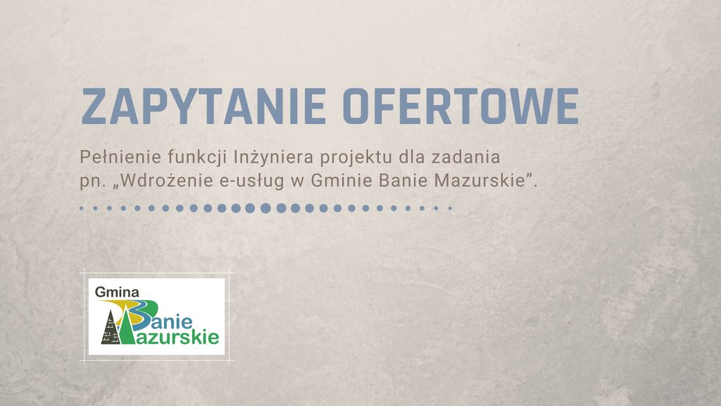 Gmina Banie Mazurskie opublikowała zapytanie ofertowe GKIŚ.ZO.271.4.2021 na pełnienie funkcji Inżyniera projektu dla zadania pn. „Wdrożenie e-usług w Gminie Banie Mazurskie”.