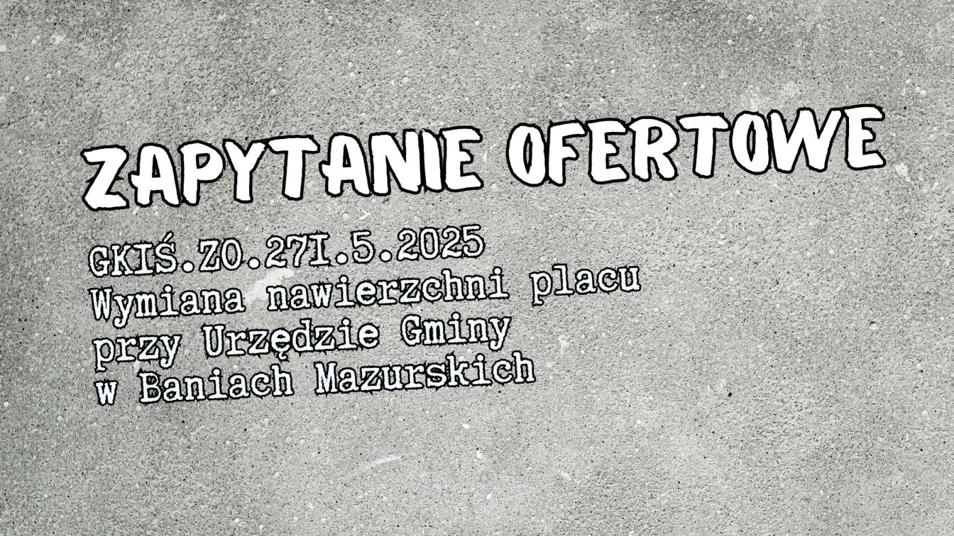 Gmina Banie Mazurskie opublikowała postępowanie o udzielenie zamówienia publicznego GKIŚ.ZO.271.5.2025 na wymianę nawierzchni placu przy Urzędzie Gminy w Baniach Mazurskich.