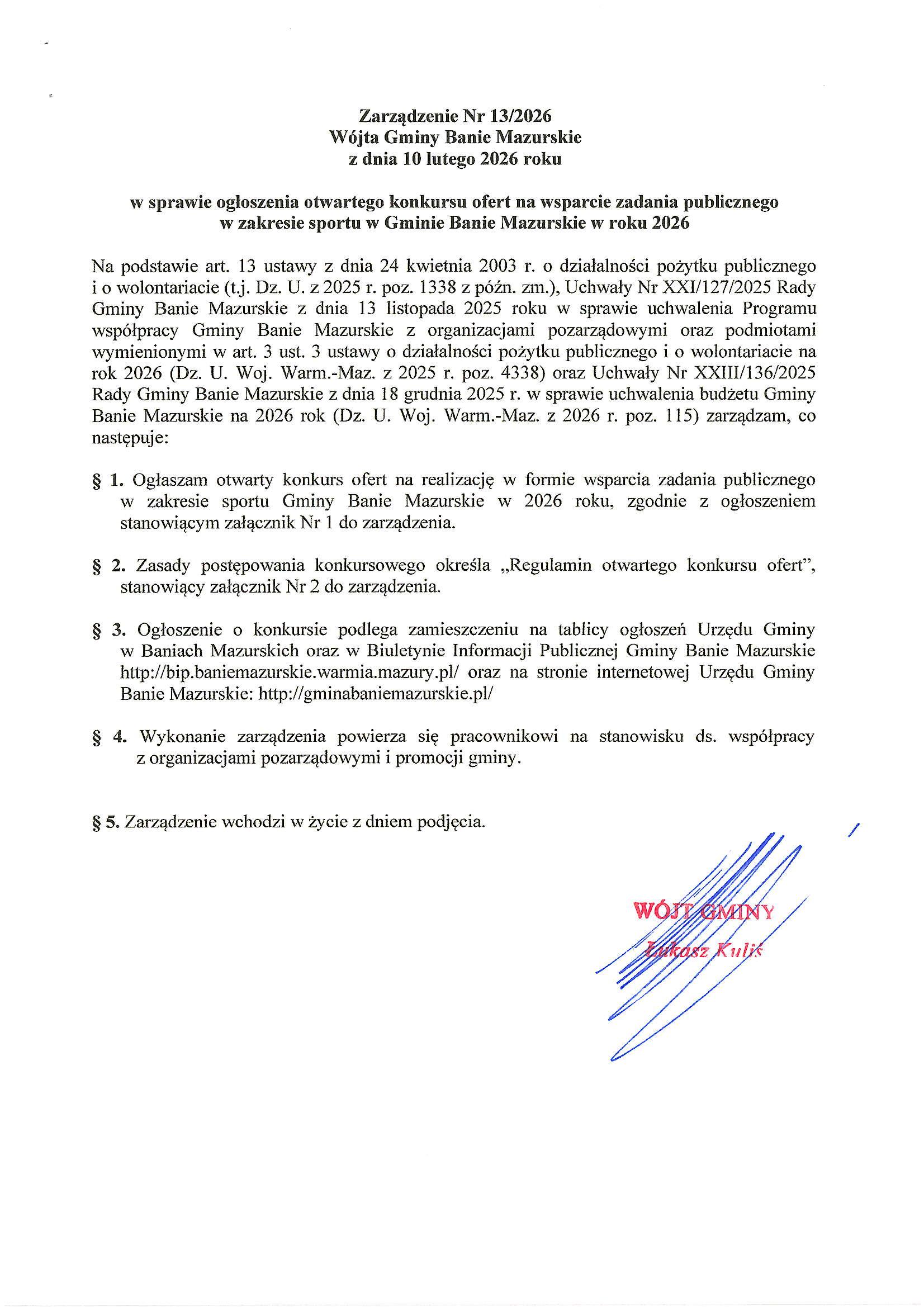 - Załącznik Nr 1 do Zarządzenia Nr 13/2026 – ogłoszenie o otwartym konkursie ofert