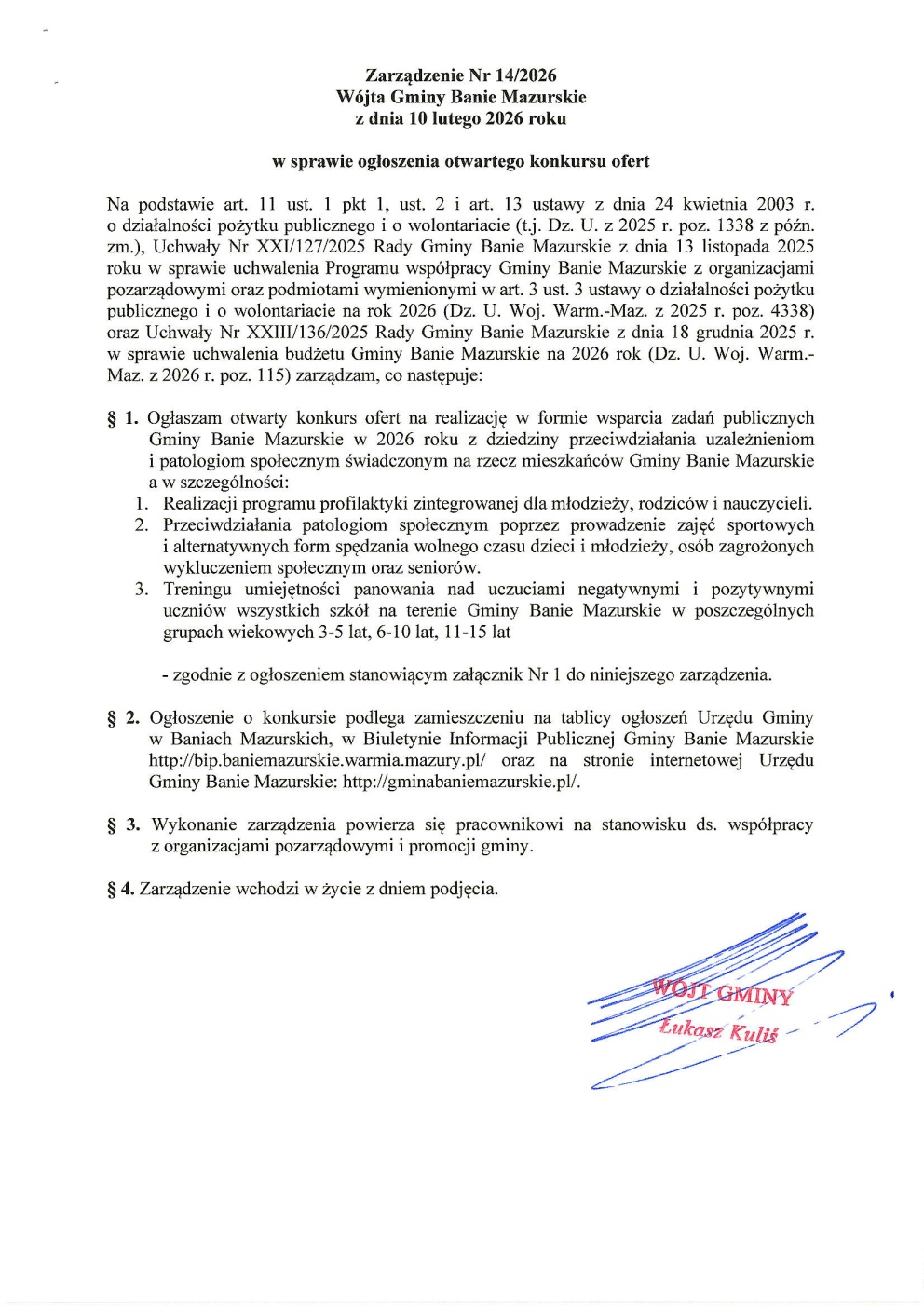 - Załącznik Nr 1 do Zarządzenia Nr 14/2026 – ogłoszenie o otwartym konkursie ofert
